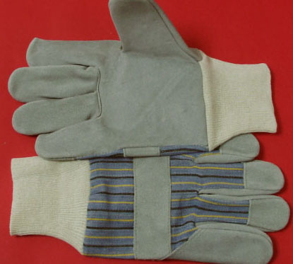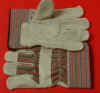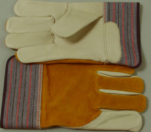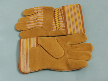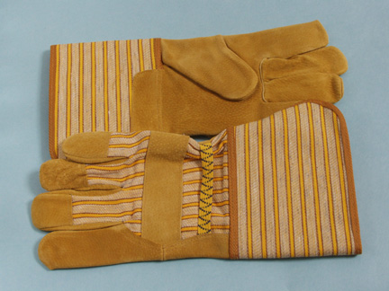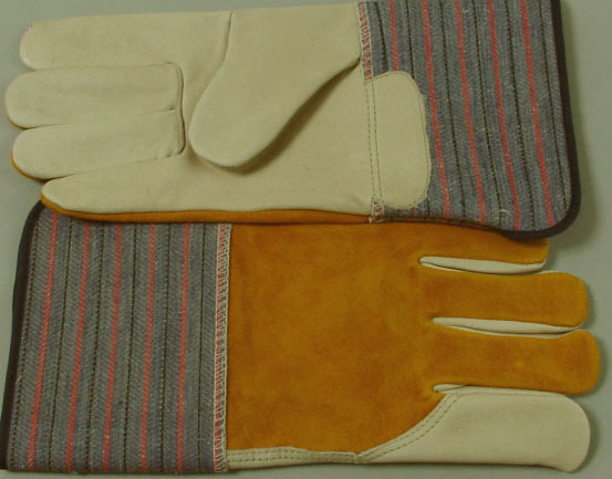 SHOULDER SPLIT LEATHER PATCHED DOUBLE PALM, STRIPE FABRIC BACK, 2.5" RUBBERIZED CUFF, LINED