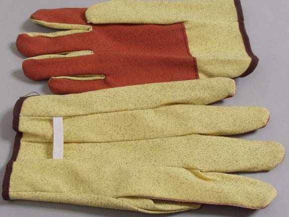 MEN'S DOUBLE PALM, STRETCH BROWN VINYL GLOVE.